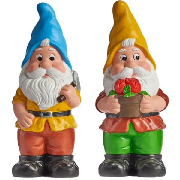 Tuinkabouter beeldjes set van 2x – Keramiek – 24.5 cm – geel/bruin