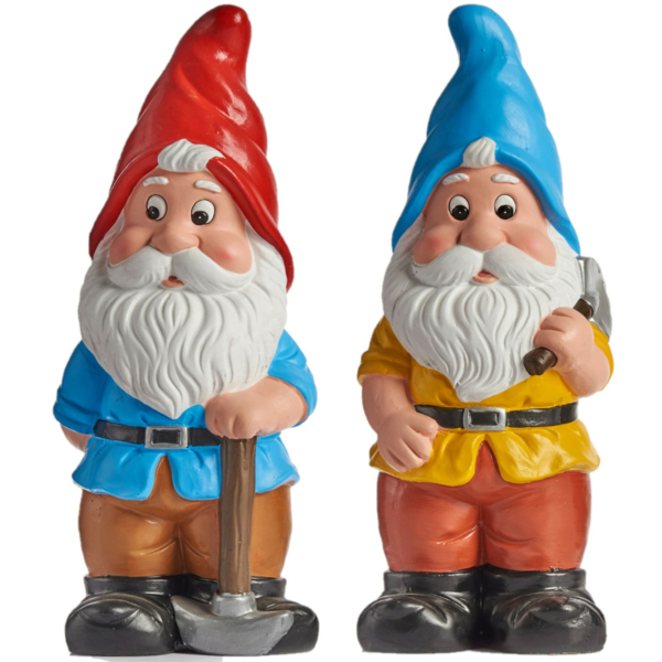 Tuinkabouter beeldjes set van 2x – Keramiek – 24.5 cm – blauw/rood