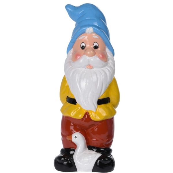 Tuinkabouter beeld Egbert met blauwe muts en een gans 20 cm